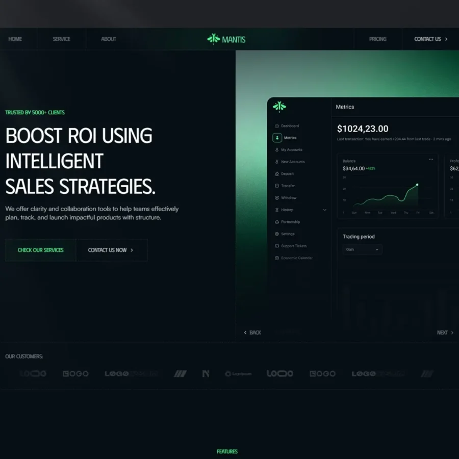 Mantis is a sleek and modern SaaS template designed for startups, agencies, and tech brands.