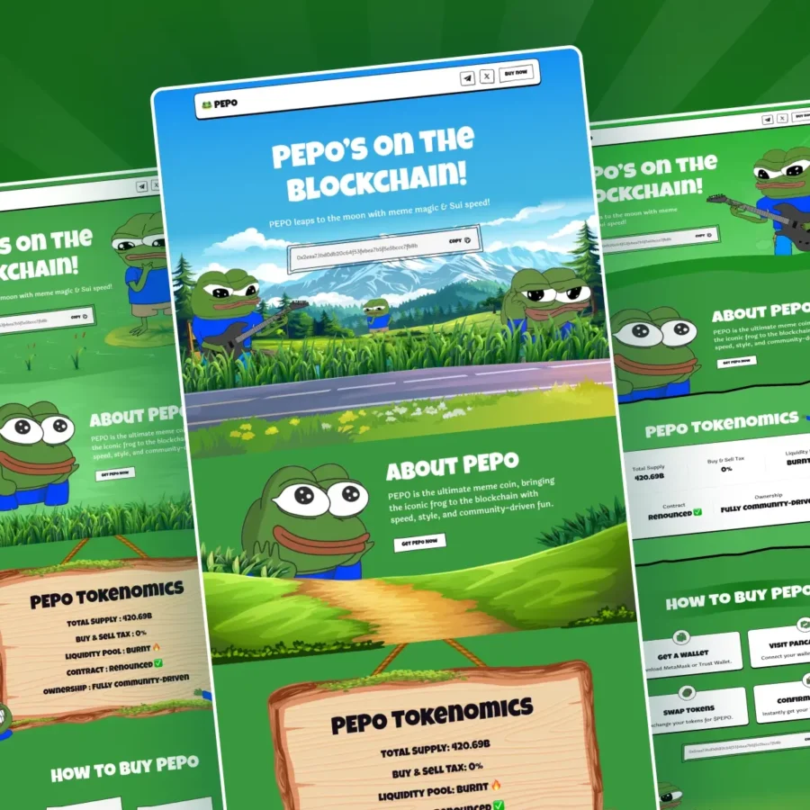 PEPO is a high-converting landing page built for launching memecoins, cryptocurrency projects, and viral crypto tokens.
