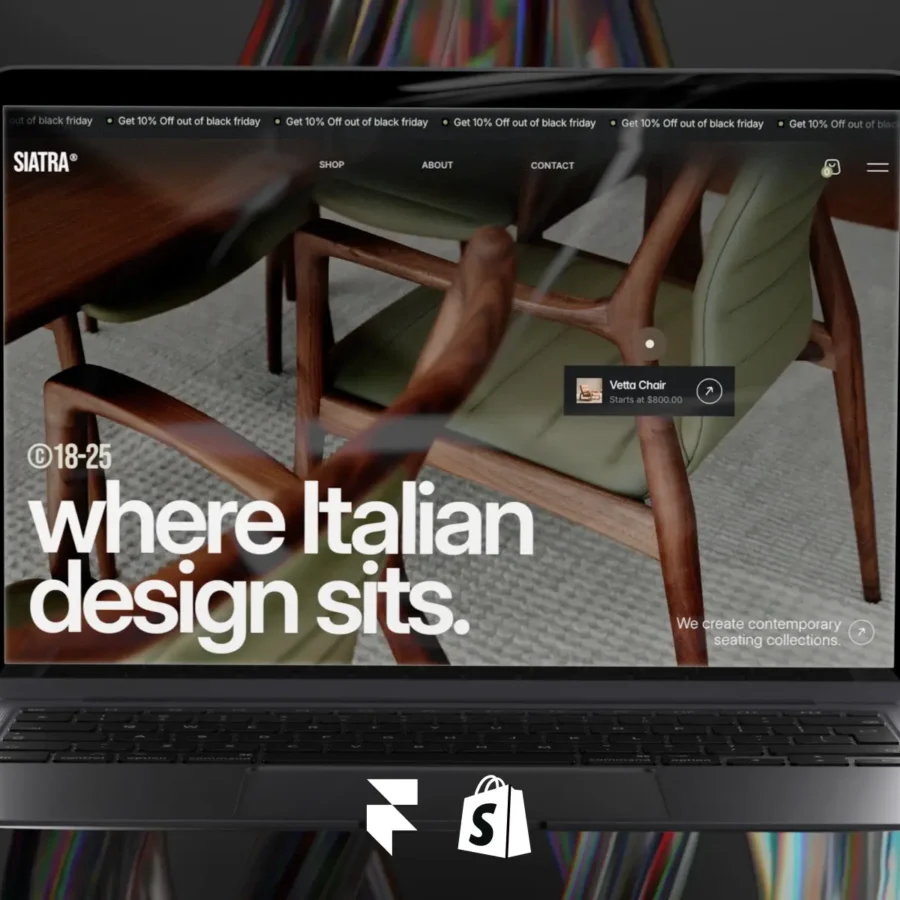 SIATRA is a dark, modern e-commerce template for Framer — designed for furniture and interior design brands.
